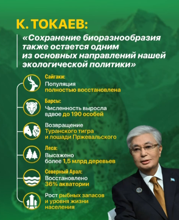 Выступая на Региональном экологическом саммите, Президент Республики Казахстан Касым-Жомарт Токаев подчеркнул, что сохранение биоразнообразия остается одним из ключевых направлений экологической политики страны, а реализуемые меры уже демонстрируют конкретные результаты.