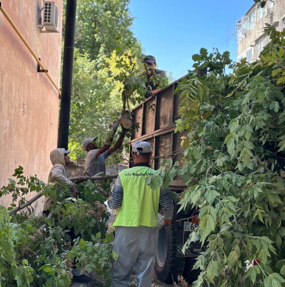 • Ағаштардың қураған бұтақтарын кесу және арнайы техникамен арту;