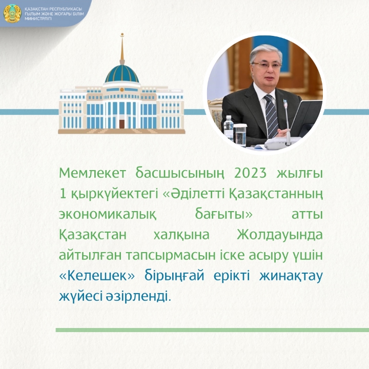 Мемлекет басшысының 2023 жылғы 1 қыркүйектегі «Әділетті Қазақстанның экономикалық бағыты» атты Қазақстан халқына Жолдауында айтылған тапсырмасын іске асыру үшін «Келешек» бірыңғай ерікті жинақтау жүйесі (бұдан әрі – Келешек) әзірленді.
