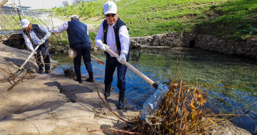 Премьер-министр Олжас Бектенов Президенттің «Таза Қазақстан» бастамасы аясында Түркістан облысы Сайрам ауданы Ақбұлақ ауылындағы «Ақ-Ата» бұлағын тазарту және абаттандыру іс-шараларына қатысты.