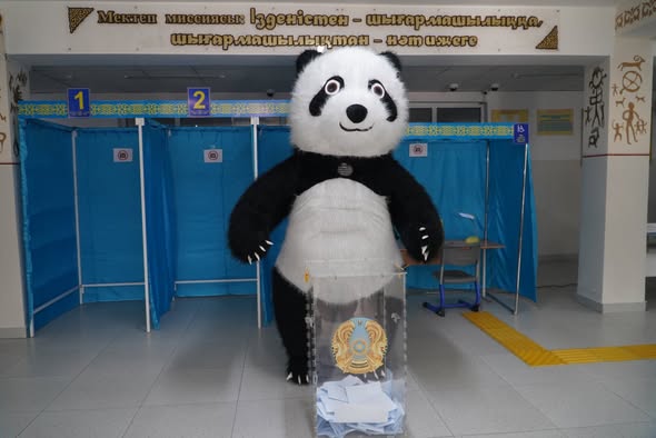 Байдібек ауданындағы референдум учаскелерінің біріне анимациялық кейіпкер – «Кунг-фу Панда» костюміндегі азамат келіп, дауыс берді. Бұл көрініс тұрғындардың көңіл-күйін көтеріп, референдумға қатысудың маңызын қызықты форматта жеткізді.