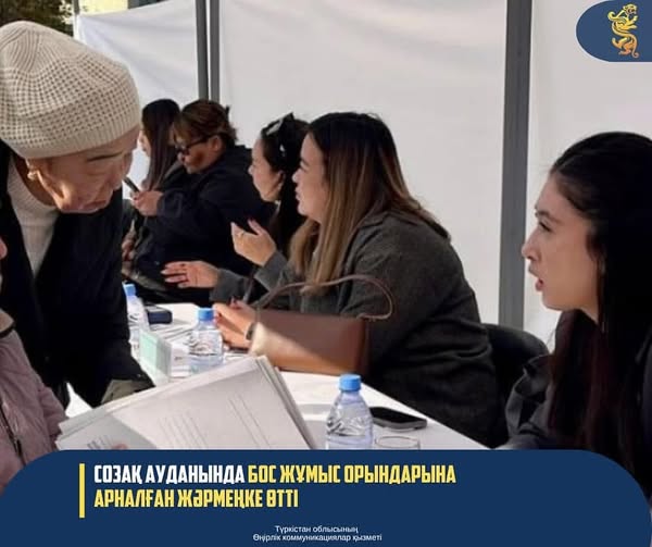Созақ ауданының орталығы – Шолаққорған ауылында азаматтарды жұмыспен қамту және еңбек нарығында белсенділікті арттыру мақсатында бос жұмыс орындары жәрмеңкесі өтті.