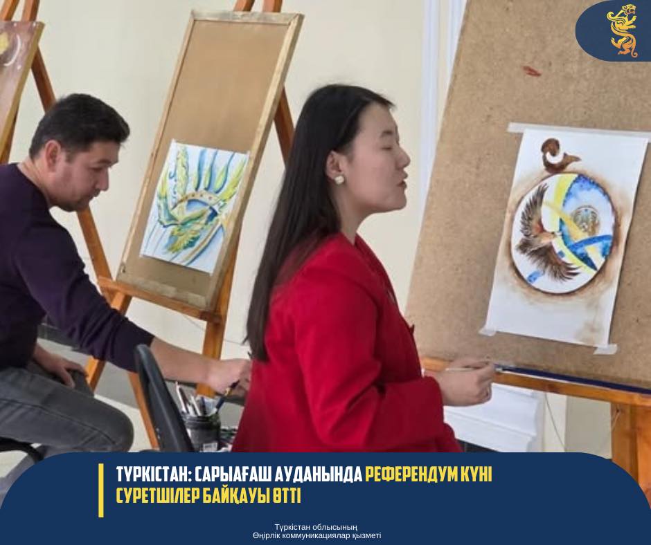 Сарыағаш ауданындағы №653 дауыс беру учаскесінде жалпыхалықтық референдум аясында суретшілер байқауы ұйымдастырылды. Шара — елдің Туы, Елтаңбасы мен Әнұранының маңызын кеңінен дәріптеп, жастардың патриоттық рухын арттыруға бағытталды. Жарысқа қатысқан суретшілер Мемлекеттік рәміздерді бейнелейтін түрлі көркем туындыларын ұсынды. Дауыс беруге келген тұрғындар көрмені тамашалап, ерекше әсер алды. Байқауға қатысқан азаматтарға ұйымдастырушылар тарапынан арнайы сыйлықтар табысталды. Сонымен қатар, шара барысында жастарға патриоттық тақырыптағы шеберлік сабақтары өткізілді. Бұл олардың шығармашылық қабілеттерін дамытуға және ел тарихына деген қызығушылықтарын арттыруға мүмкіндік берді.