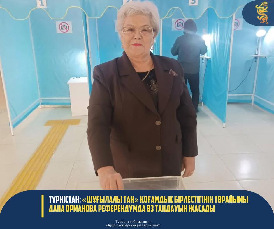 Түркістан қаласындағы №32 дауыс беру учаскесінде «Шұғылалы таң» қоғамдық бірлестігінің төрайымы Дана Орманова дауыс берді.
