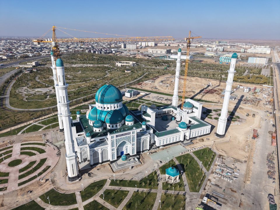 Түркістан қаласына кіреберісте әлемдегі озық тәжірибелерді ұштастырған еңселі мешіттің құрылысы аяқталуға жақын. Қазіргі таңда мешіттің қасбеті, мұнарасы, электрмен және сумен жабдықтау, терезе орнату жұмыстары толық аяқталған. Сонымен қатар ішкі әрлеу жұмыстары жүргізіліп жатыр. Нысан басында 30-дан астам адам мен 9 техника жұмылдырылған. Заман талабына сай салынып жатқан мешіттің құрылыс алаңына облыс әкімі Нұралхан Көшеров арнайы барып, жауапты басшылармен кездесті. Ол жұмысты сапалы және уақтылы аяқтау жөнінде тапсырма берді.
