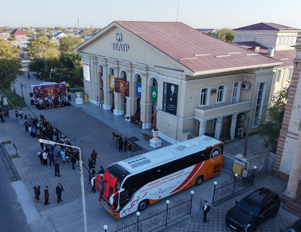 Биыл – Райымбек Сейтметов атындағы Түркістан қалалық сазды-драма театрының құрылғанына 25 жыл. Мәдениет пен руханияттың ордасына айналған қасиетті шаңырақтың меретойына арнайы қатысқан Түркістан облысының әкімі Нұралхан Көшеров театр ұжымын мерейлі мерекесімен құттықтап, жаңа 50 орындық заманауи автобустың кілтін табыстады.