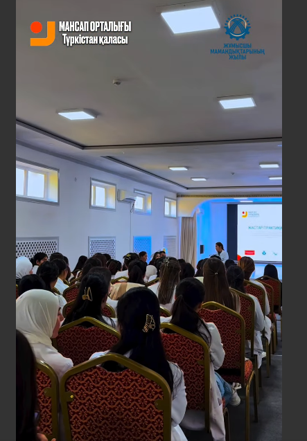Бүгінгі таңда Түркістан өңірінде жастар арасындағы жұмыссыздық деңгейін төмендету және олардың еңбекке араласу белсенділігін арттыру мәселесіне ерекше көңіл бөлініп отыр. Осы ретте, қалалық Мансап орталығы оқу орындарымен тығыз байланыс орнатып, бітіруші түлектерді жұмысқа орналастыру, тәжірибе жинақтау, кәсіптік машықтарын жетілдіру бағытында нақты шаралар атқаруда. Кездесу барысында студенттерге «Жастар практикасы», «Алғашқы жұмыс орны», «Күміс жас», «Қоғамдық жұмыстар» және «Кәсіпкерлікті дамыту» сияқты мемлекеттік бағдарламалар таныстырылды. Мамандар әр бағдарламаның ерекшелігі мен талаптарын егжей-тегжейлі түсіндіріп, қатысу жолдарын нақты мысалдармен көрсетті. Сонымен қатар, жастарға жұмыс іздеудің тиімді тәсілдері, резюме құрастыру ережелері, әңгімелесуге дайындық, интервью кезінде өз қабілетін дұрыс көрсету сияқты маңызды бағыттар бойынша практикалық кеңес берілді.
