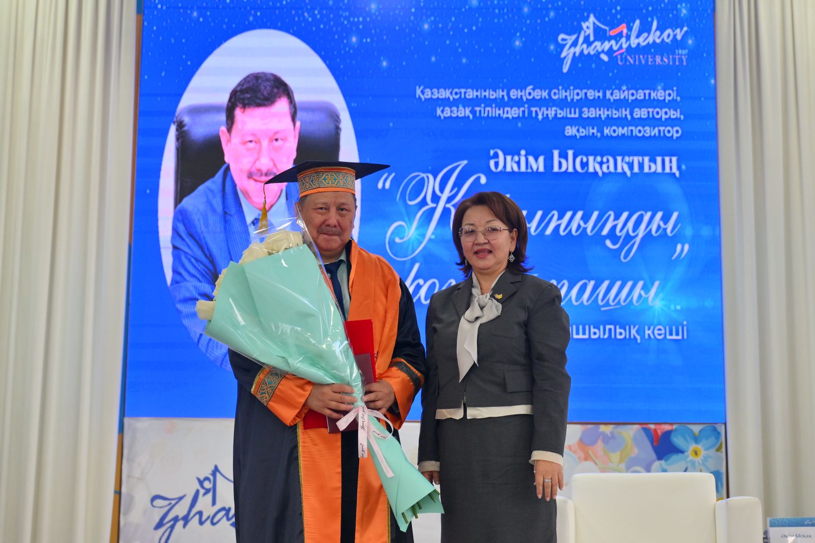 Кешті университет Басқарма төрағасы-ректор міндетін атқарушы Гүлжан Сүгірбаева жүргізіп, Әкім Ысқаққа «Құрметті профессор» атағы берілді.